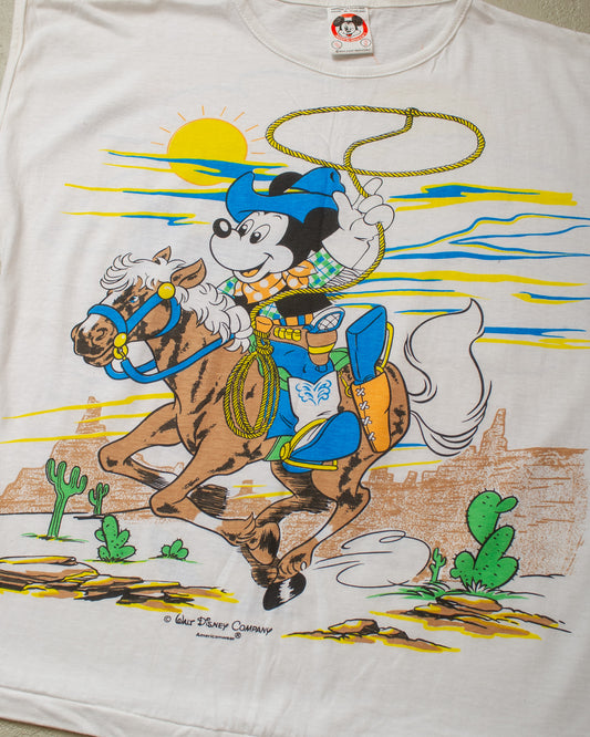 1980s Deadstock Cowboy Mickey Shirt white - M