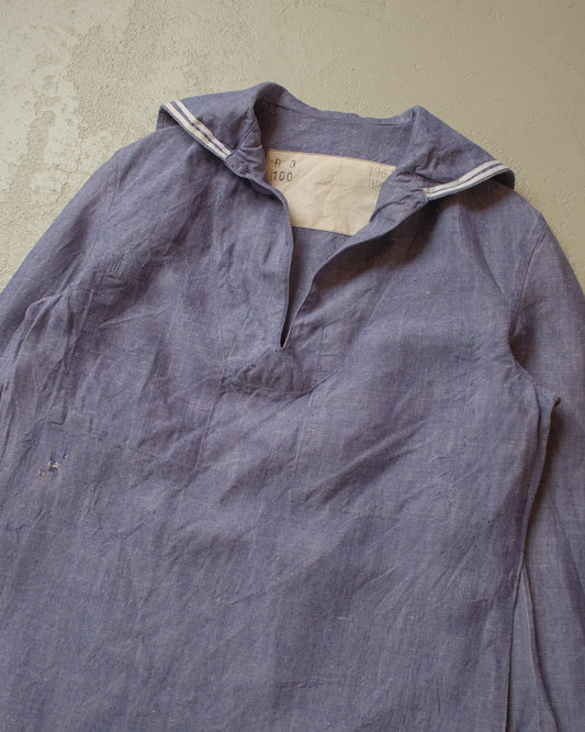 1967 French Navy Linen Sailor Shirt blue - XL