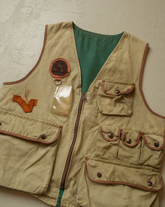 1970s distressed Fishing Vest khaki - M
