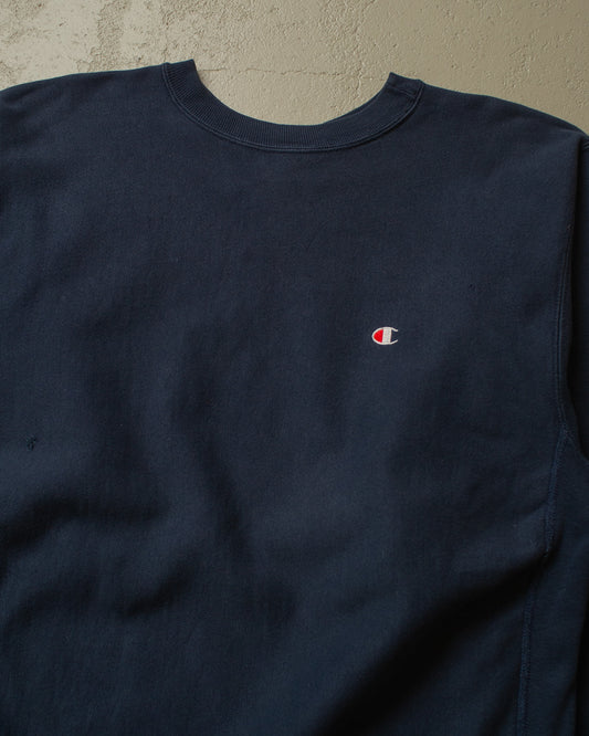 1990s Champion Logo Reverse Weave Sweatshirt navyblue - XL