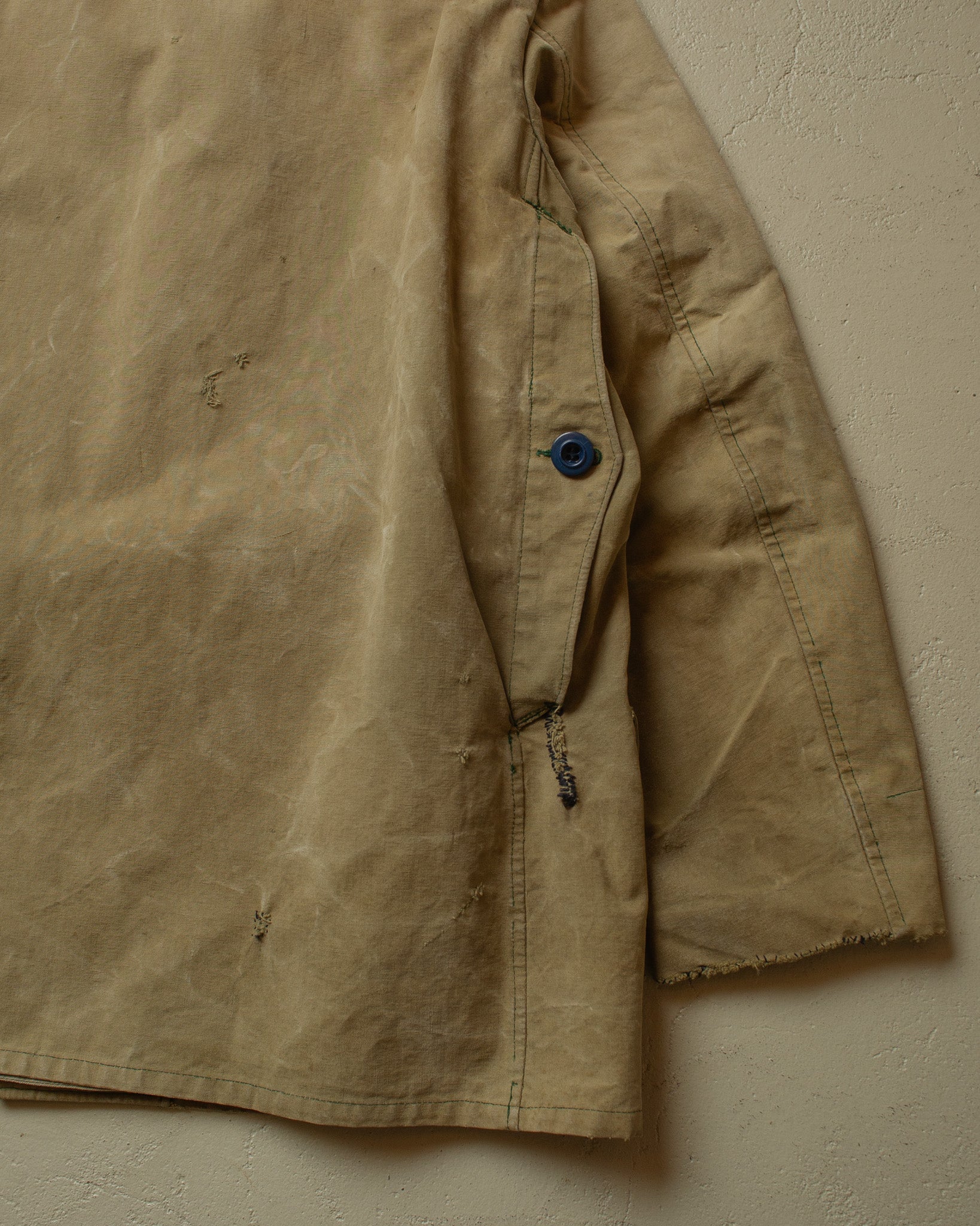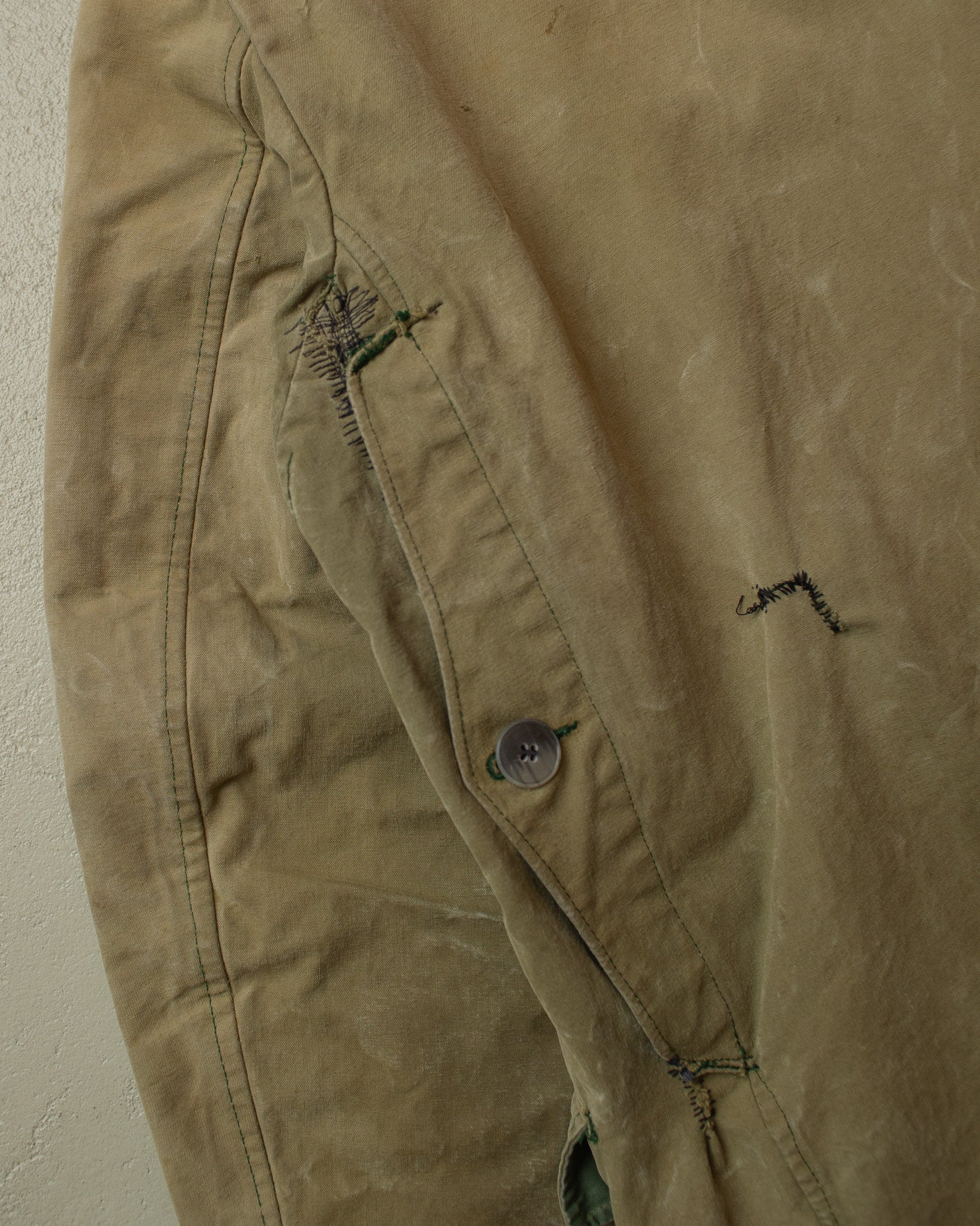 Condition: worn, has major signs of wear, repairs throughout, changed buttons, stains throughout