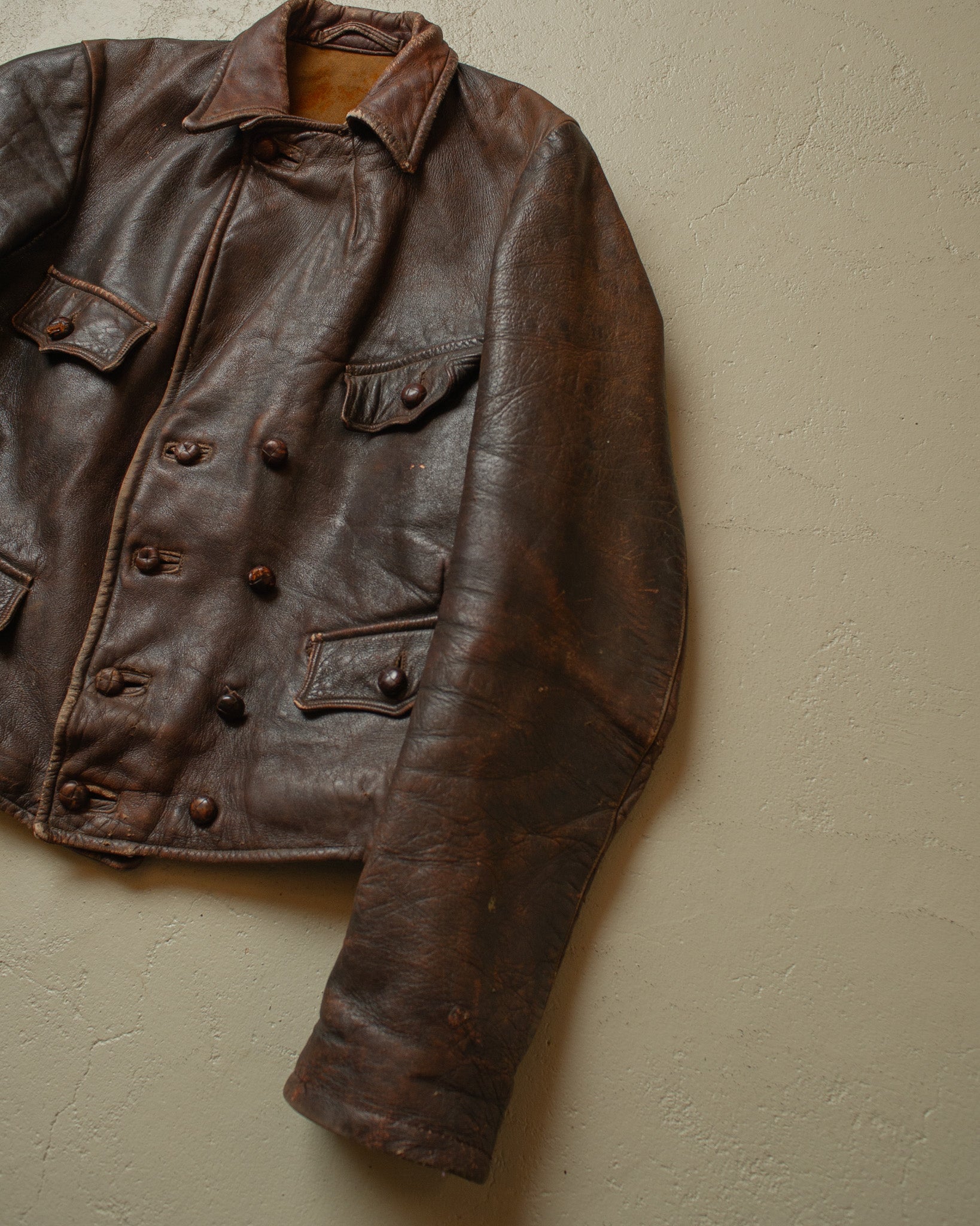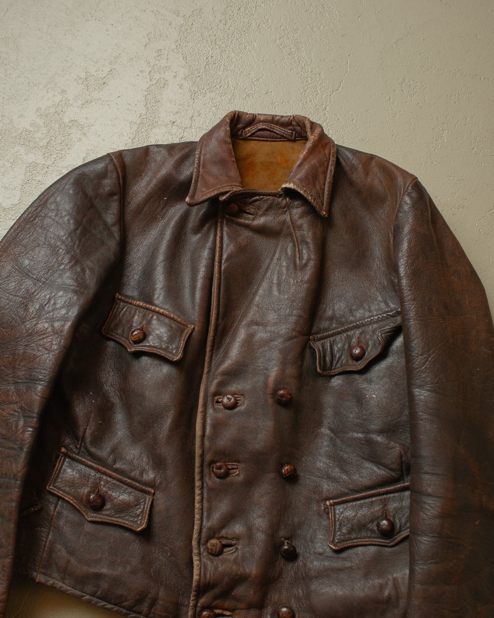1930s German Cyclist Horsehide Leather Jacket brown - S