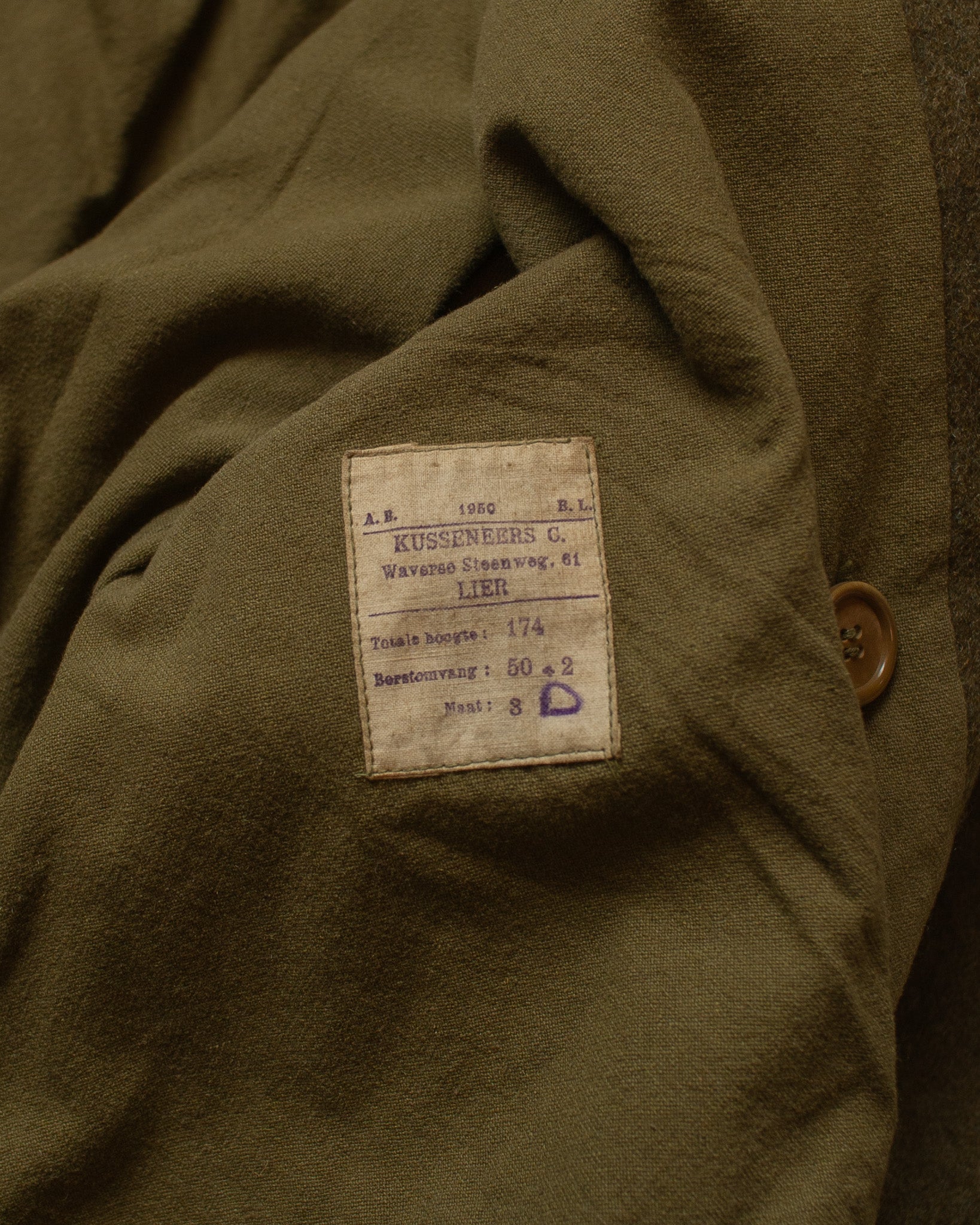 1950 Belgian Post Wool Coat khaki - M