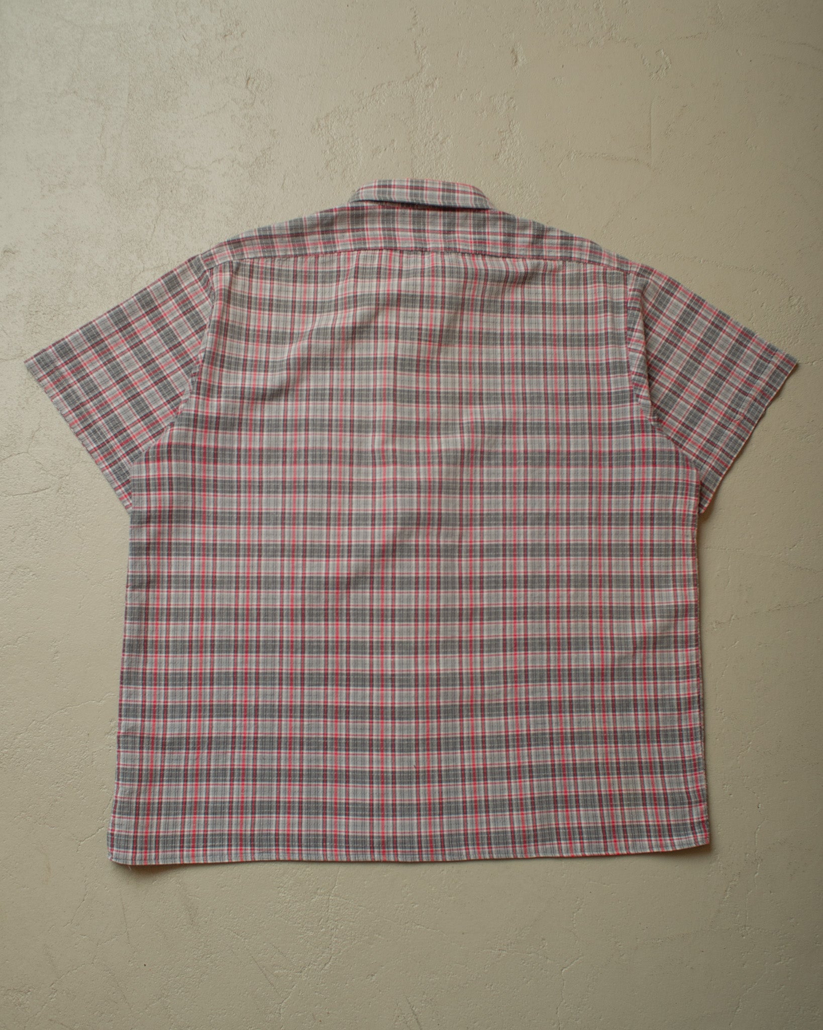 1950s/60s German checkered Cotton Work Shirt red/grey - XL/XXL