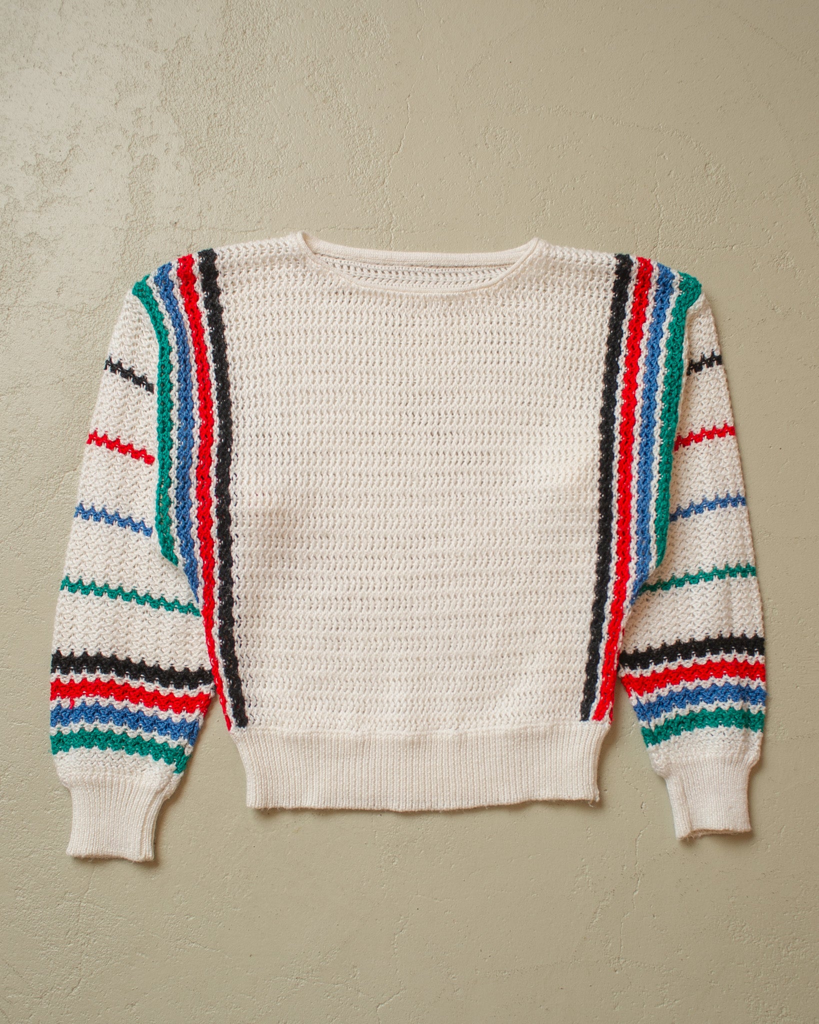 1970s Womens striped Knit Sweater white - S